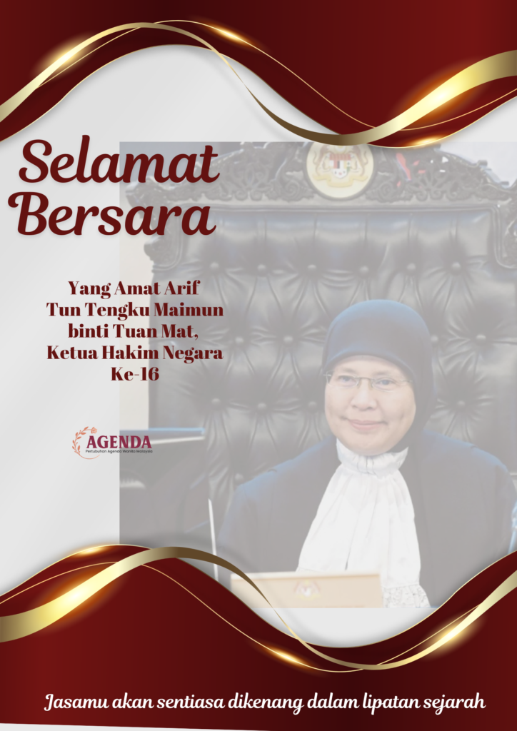 Pertubuhan AGENDA Wanita Malaysia (AGENDA) merakamkan setinggi-tinggi penghargaan dan ucapan selamat bersara kepada Yang Amat Arif Tun Tengku Maimun binti Tuan Mat, Ketua Hakim Negara Ke-16, yang telah bersara secara rasmi pada 1 Julai 2025.